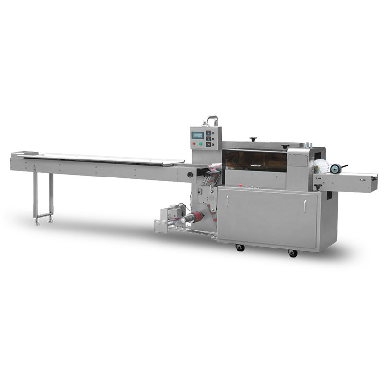 AIPAK APK-450B flow wrap machine is suitable for packaging food, mop head, bulk ginger, twist, seaweed, spoon, sausage, squid, sanitary napkin, grapefruit, paper cups, gloves, yam, warm baby, infusion bags and so on.Adopts double frequency conversion control,you will no need more complicated setting.With imported electrical appliances and touch man-machine interface,you will be easy to operate and set the machine parameter.